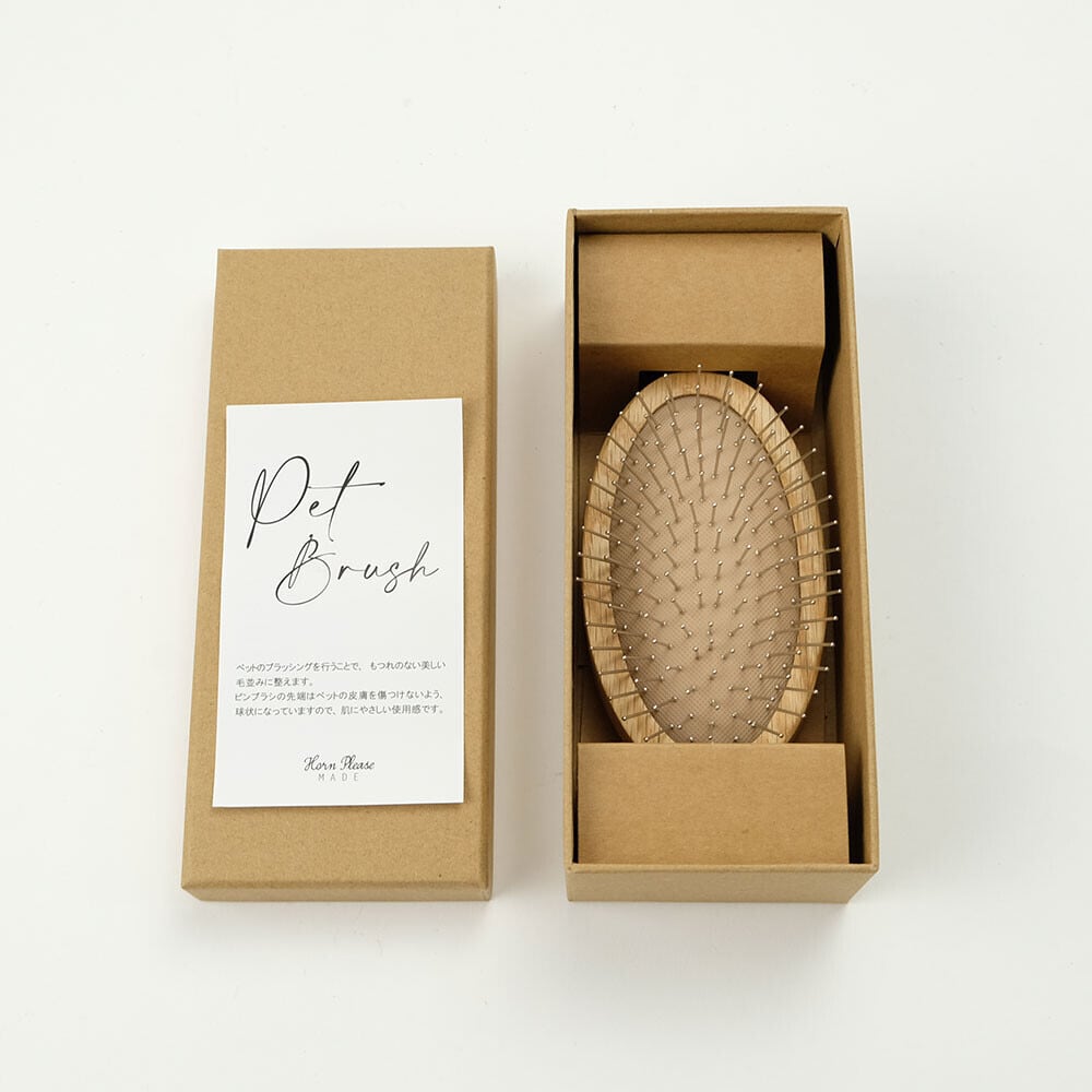 シンプルで温かみのあるデザインが魅力のペットブラシ。
