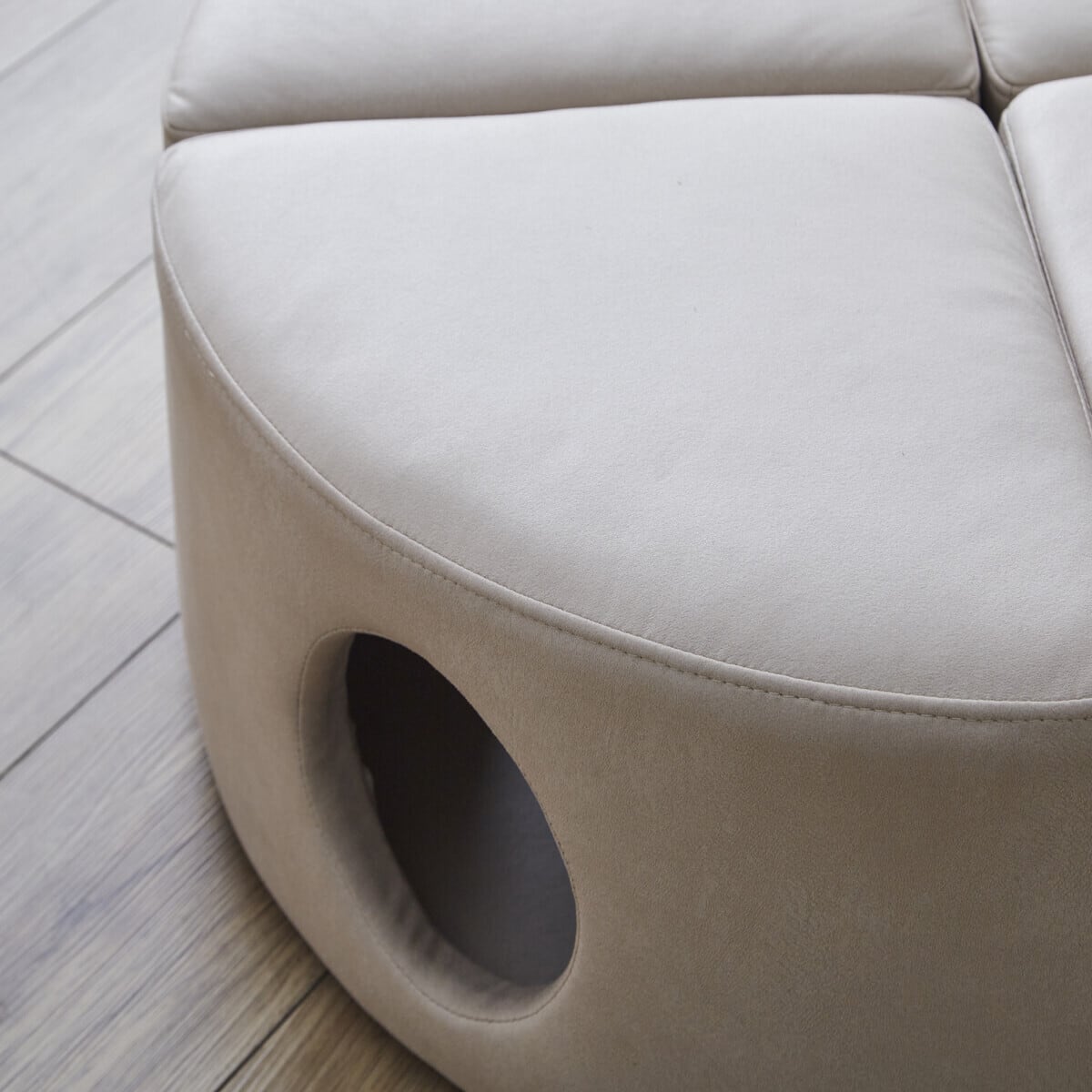 引っかきキズに強い特殊ファブリックを使った、大人が座れるキャットハウススツールです。