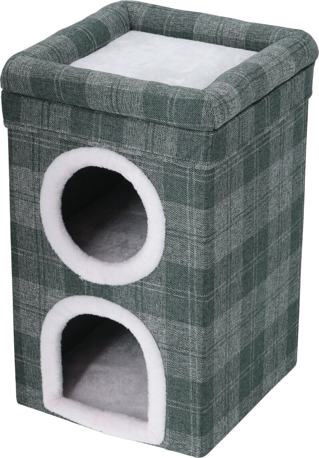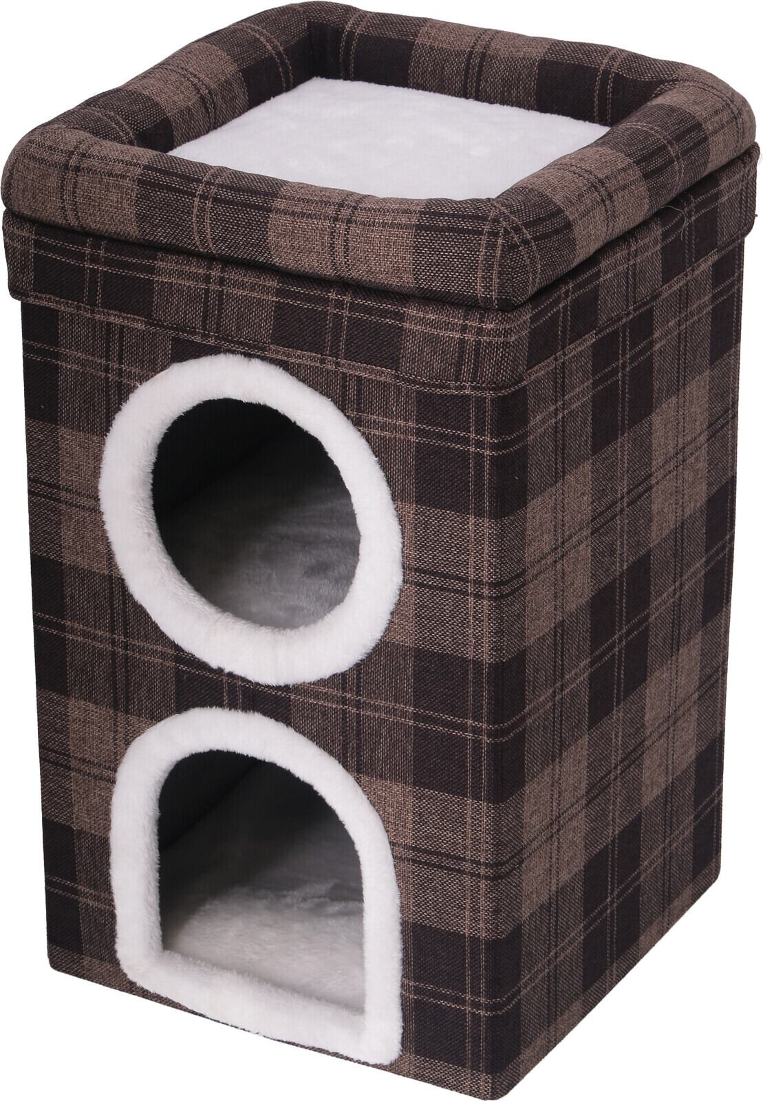 まるで2階建てのおうち◎もこもこのホワイトボアが可愛いキャットハウスです。