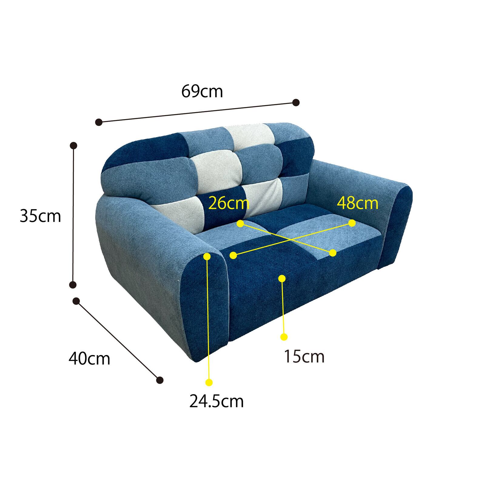 ・ブルーのパッチワーク風デザインで、お部屋のアクセントになります