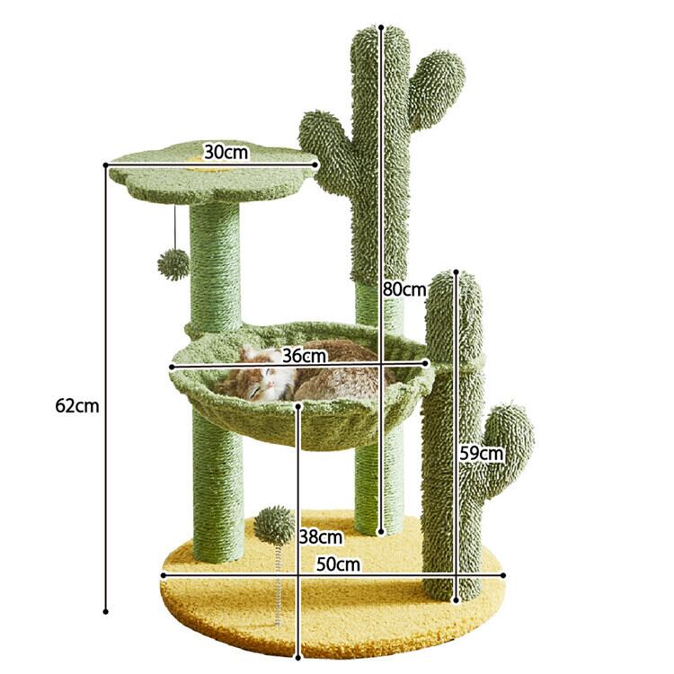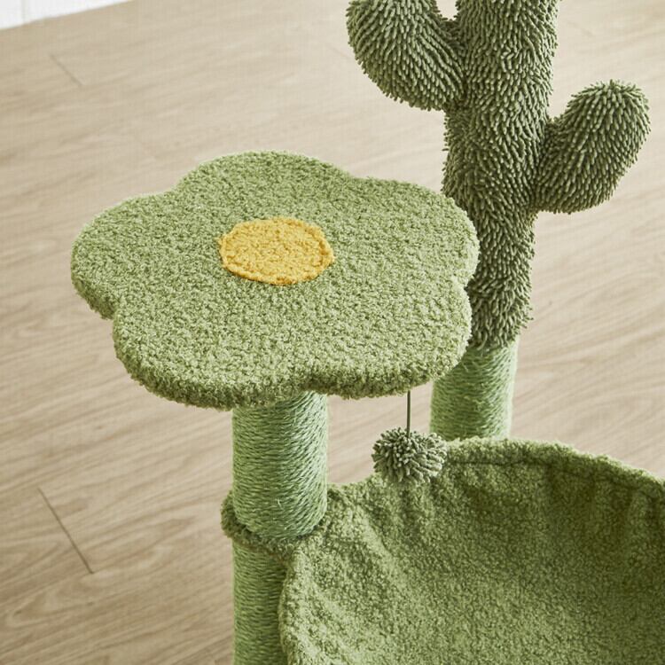 かわいいサボテン型のデザインと、ふわふわのテディボア生地が魅力のキャットタワー。