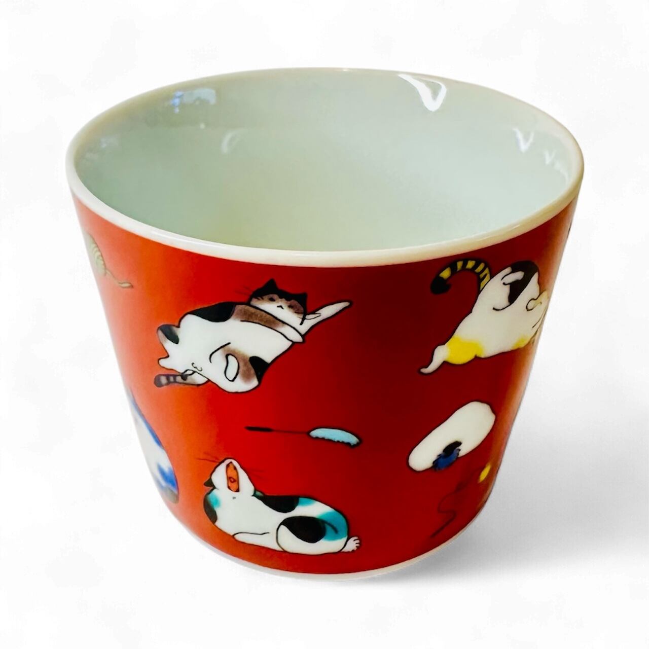 九谷焼のメーカー青郊窯より、ねこ柄の蕎麦ちょこグラスと豆皿のセットです。