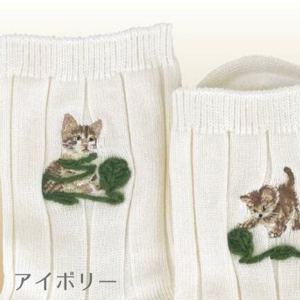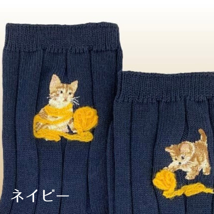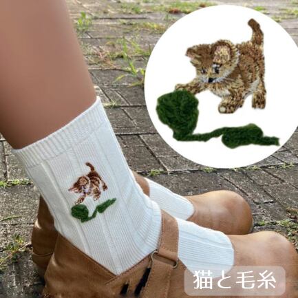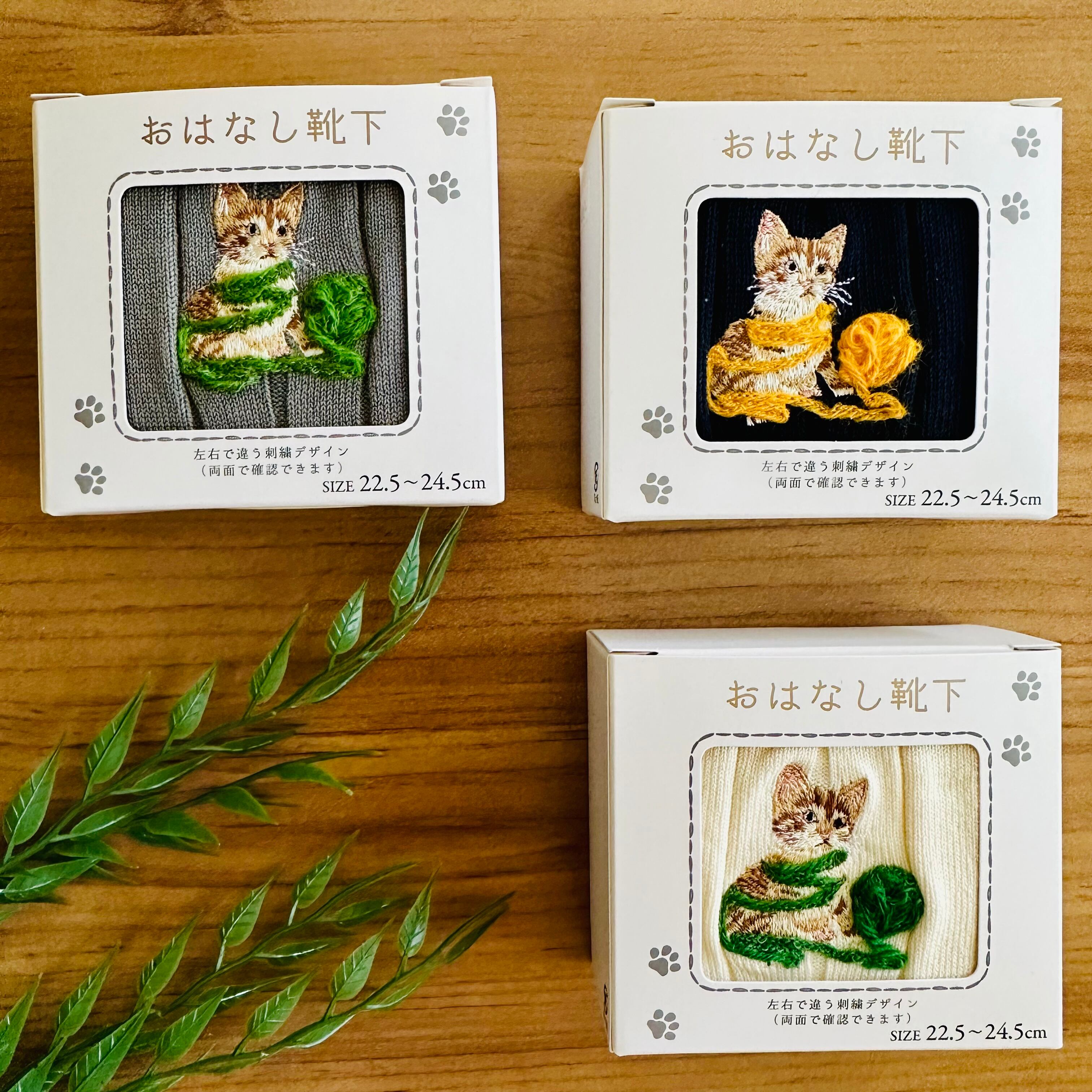右と左で異なる刺繍を施し、2コマのストーリーを楽しめるかわいい靴下です。