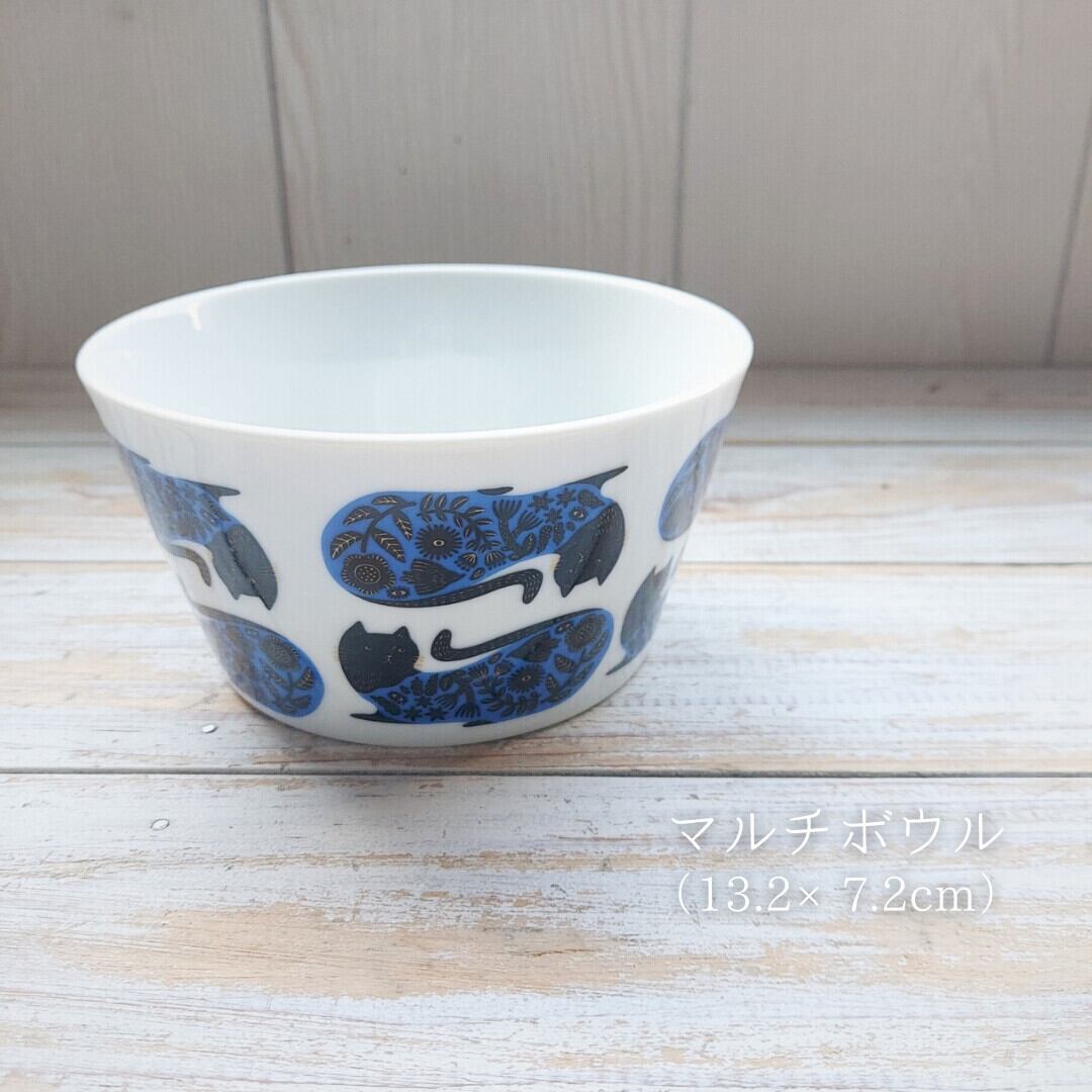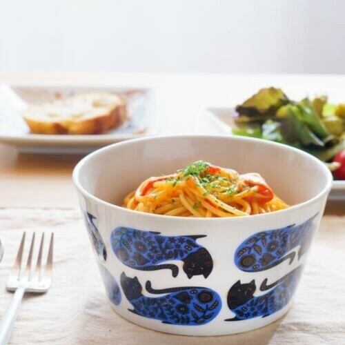 鮮やかな藍色に黒猫と花模様が映える、美濃焼のマルチボウル。