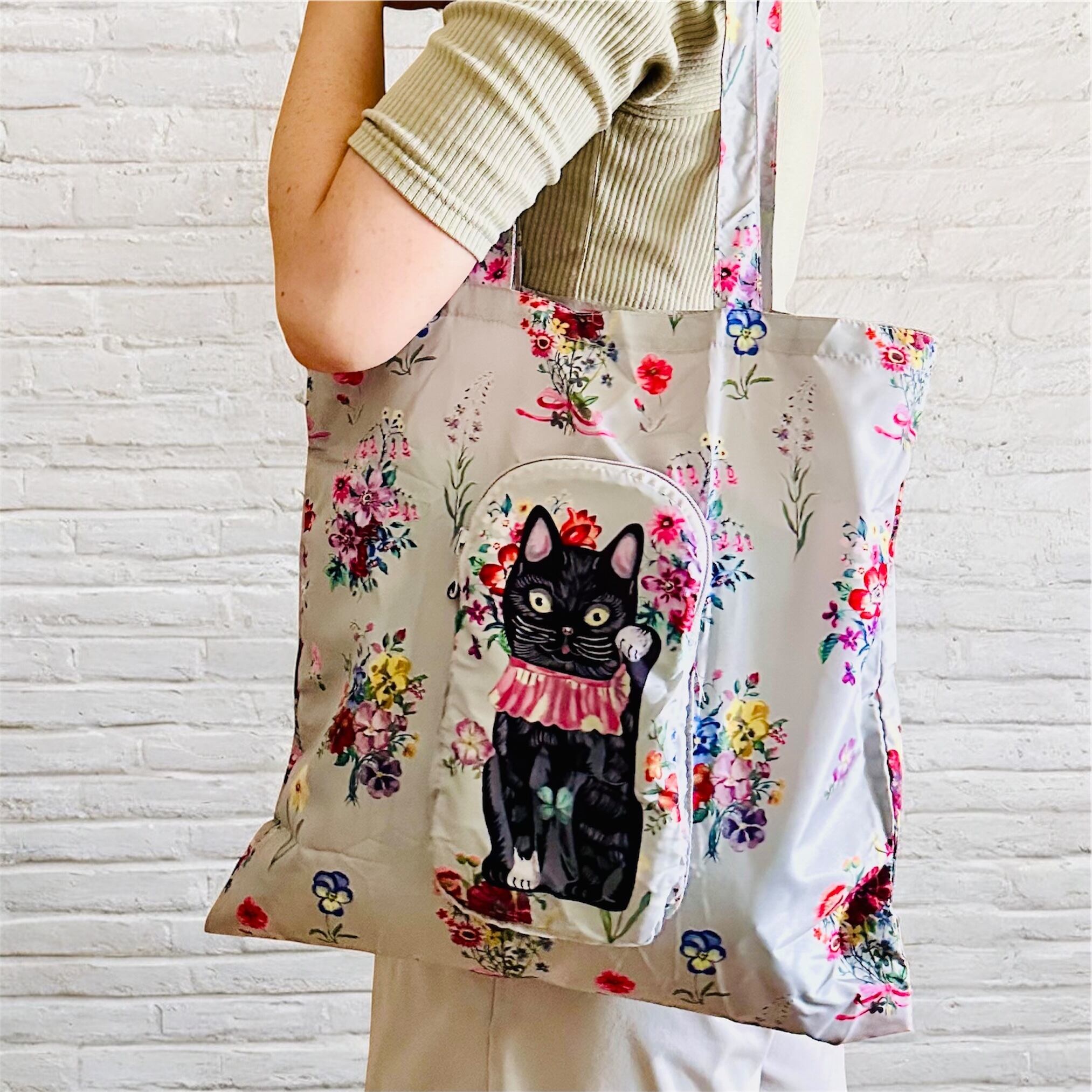 ナタリーレテが描く、キュートでユーモラスな 黒猫モチーフのトートバッグ です。