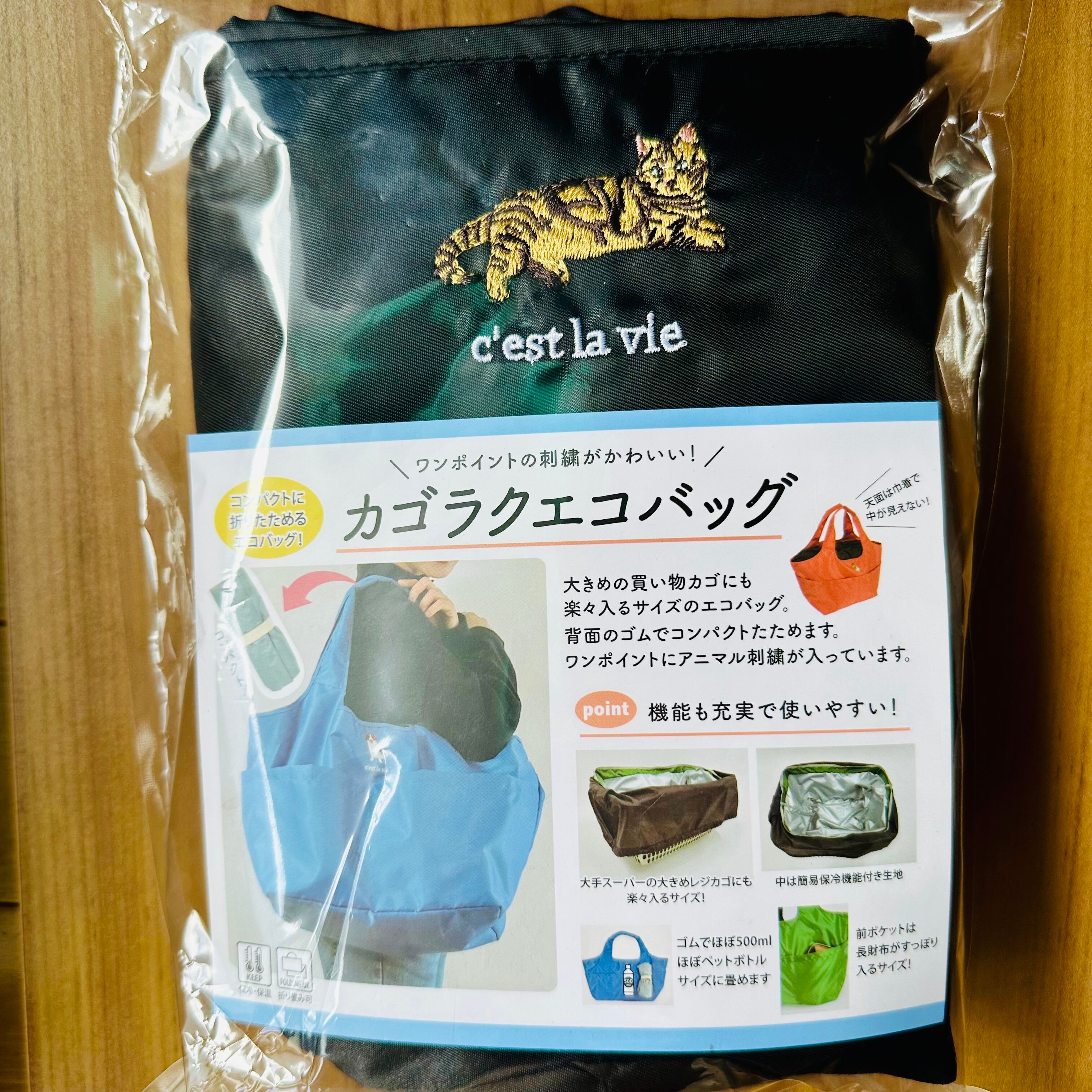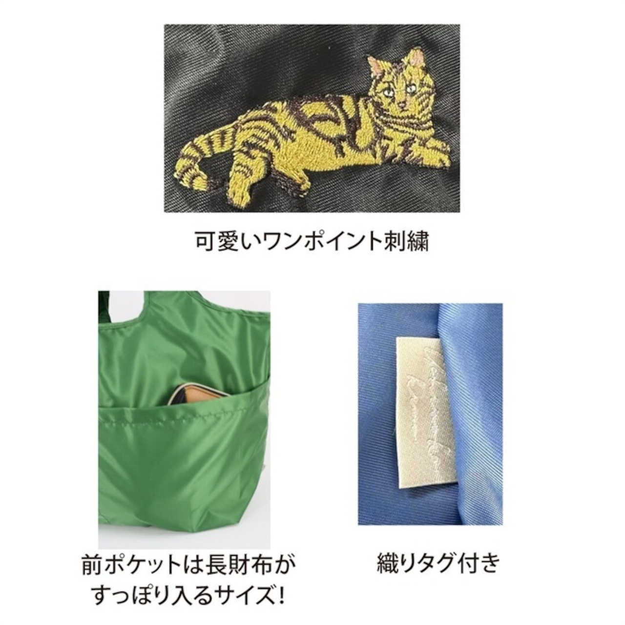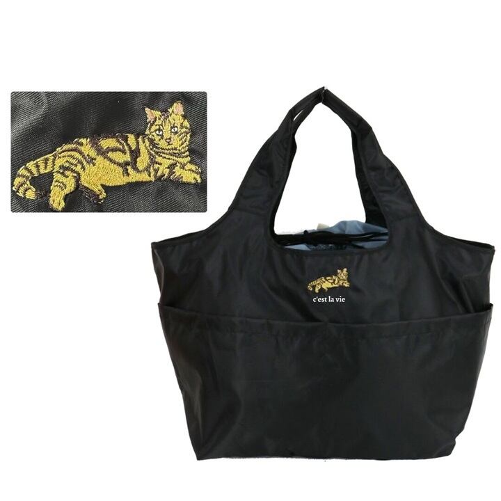 おしゃれな黒猫刺繍がワンポイント&機能充実エコバッグです。