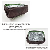 内側は簡易保冷生地になっており、食材の持ち運びにも安心です。