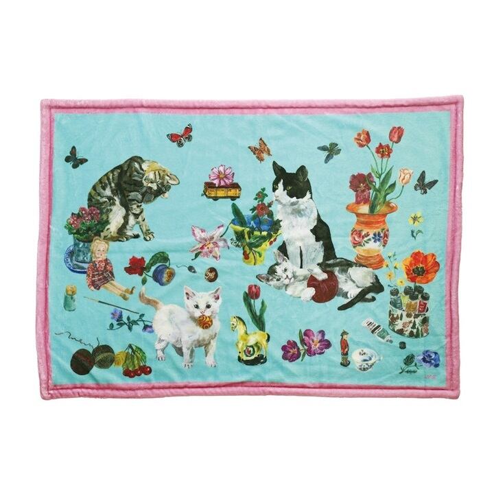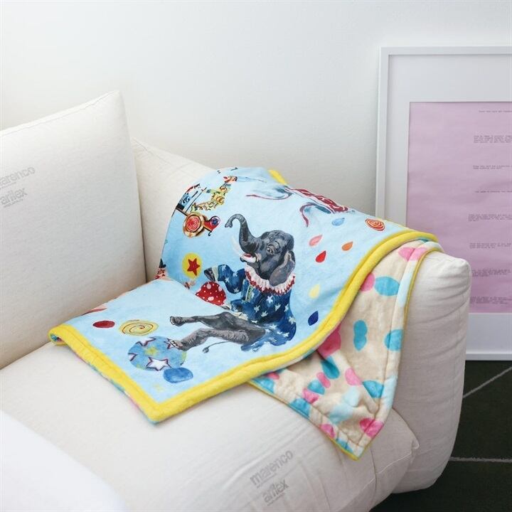 ナタリーレテの個性的で表情豊かなイラストを両面で楽しめるブランケットです。