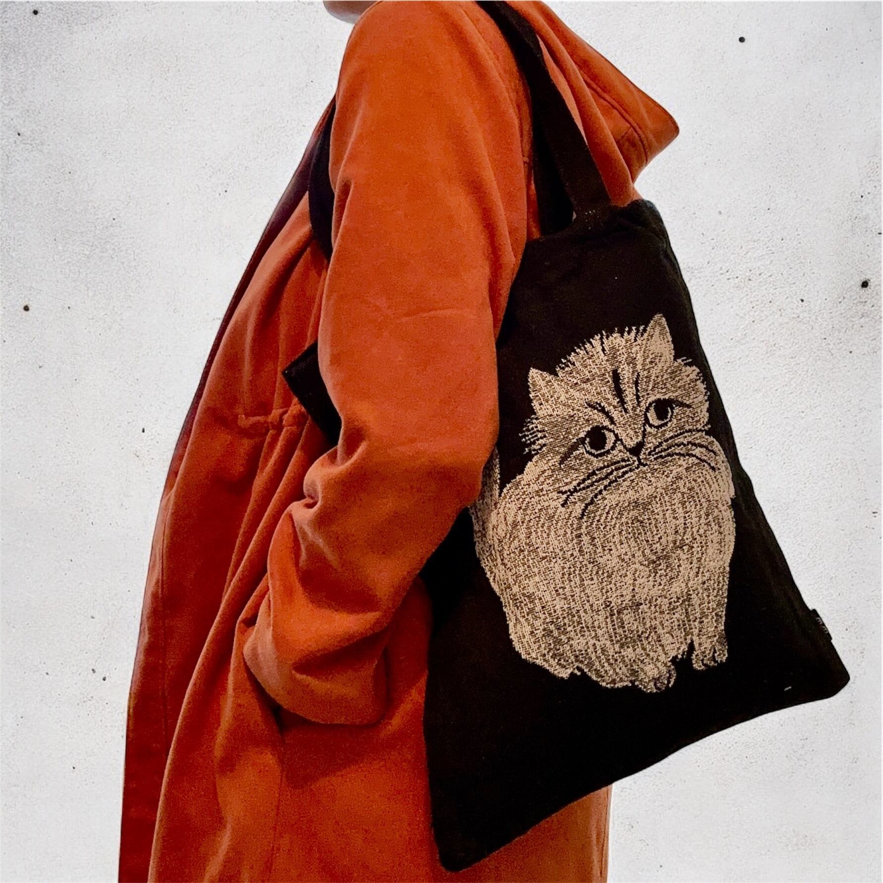 松尾ミユキさんの猫アートが映えるブラック×白猫トートです。