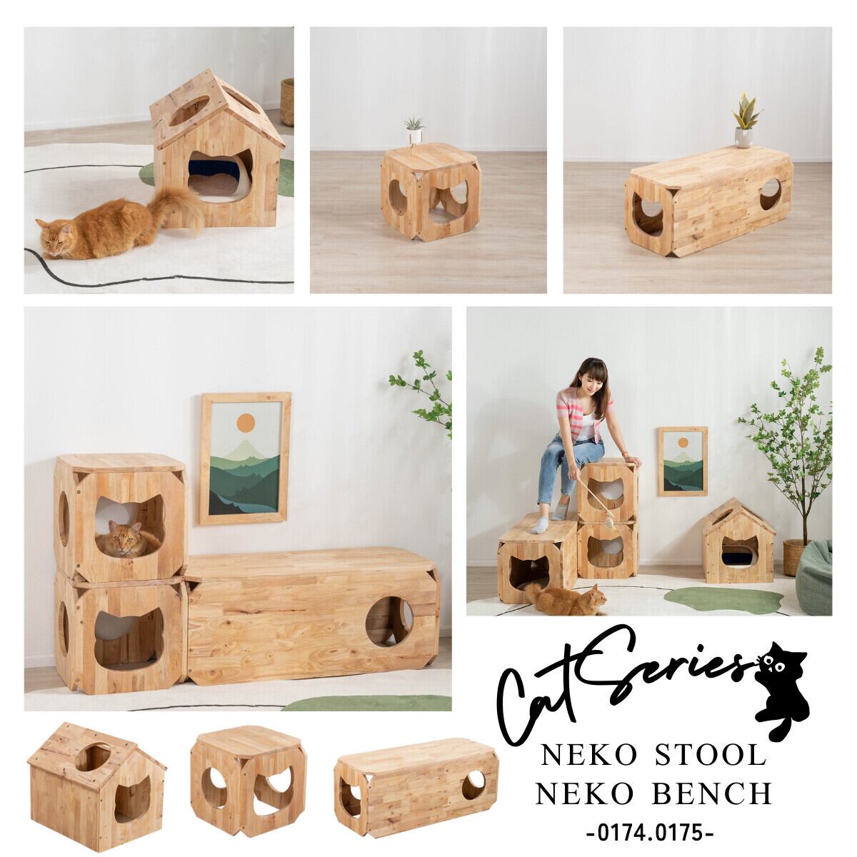 並べたり、重ねたり、自由にカスタマイズして、わたしだけの猫インテリアを楽しめます。