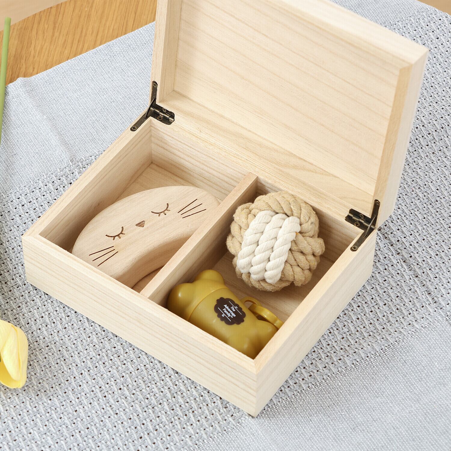 箱は2つに仕切られており、思い出の品を整理しながら収納することができます。