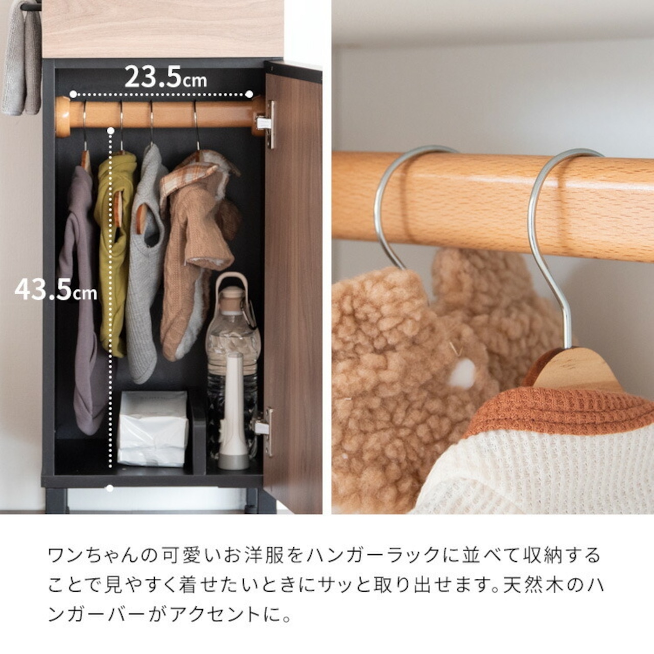 ワンちゃんのお散歩グッズやケア用品をすっきり収納できるスリムラックPaseo(パセオ)です。