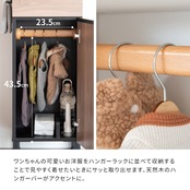 本来はワンちゃん用のラックですが、猫用おもちゃやブラシ、ケア用品の整理にもぴったり。誤飲を防ぎながら、生活感を隠しておしゃれに収納できます。