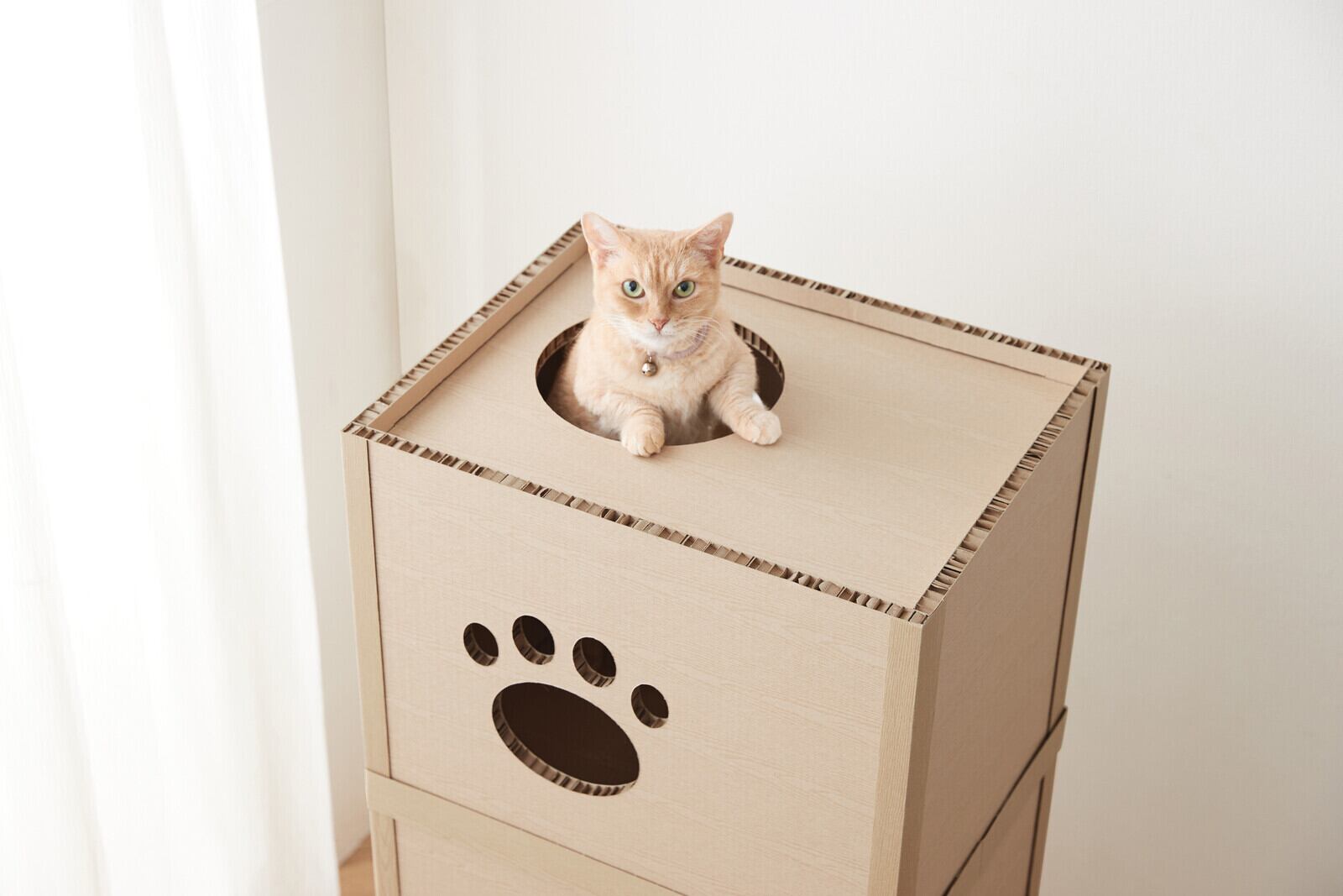 中心はハニカム構造で、猫ちゃんが飛び乗っても安定感ばつぐん。