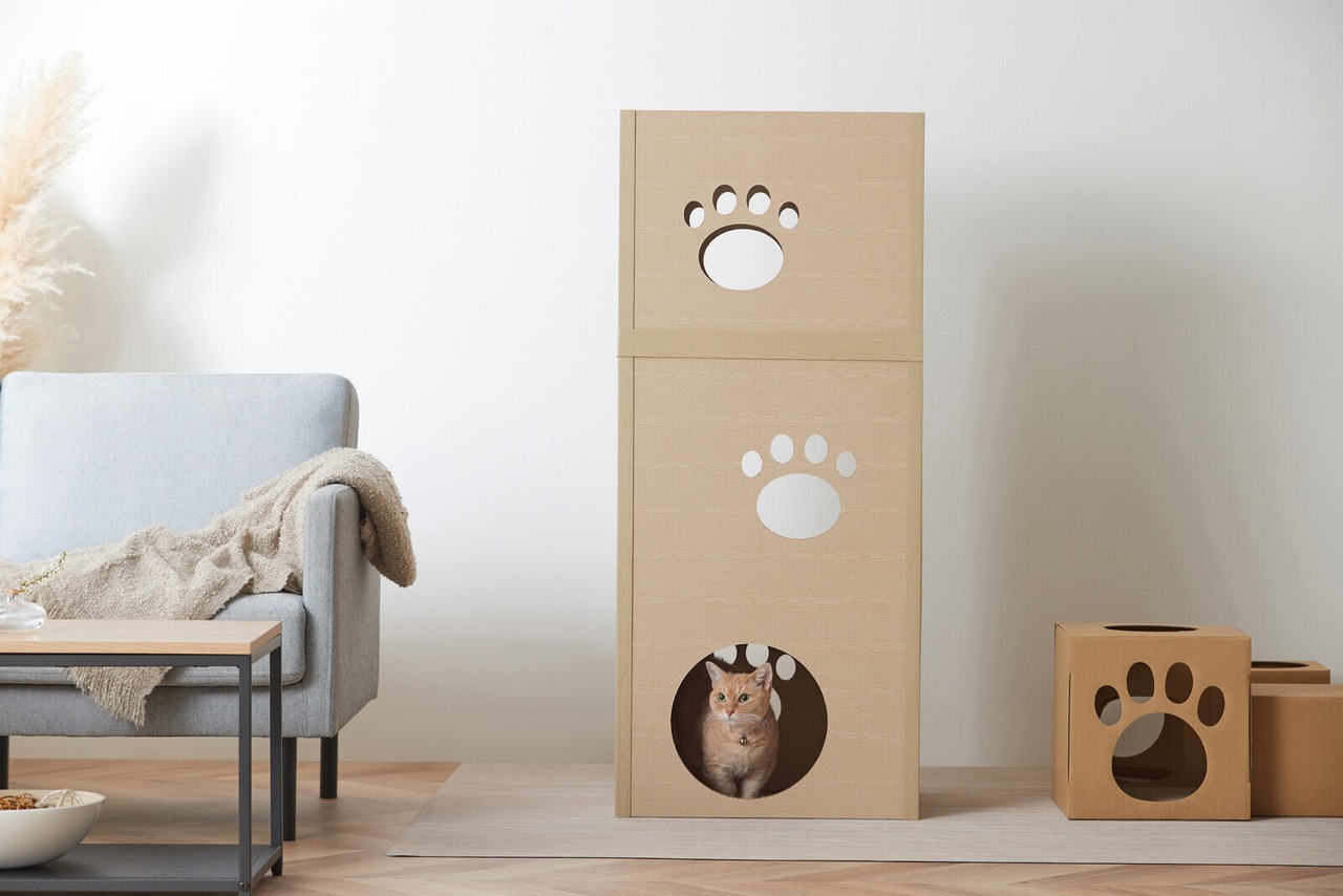 猫ちゃんが大好きな段ボール素材を使った、安心のアイリスオーヤマ製キャットタワーです。