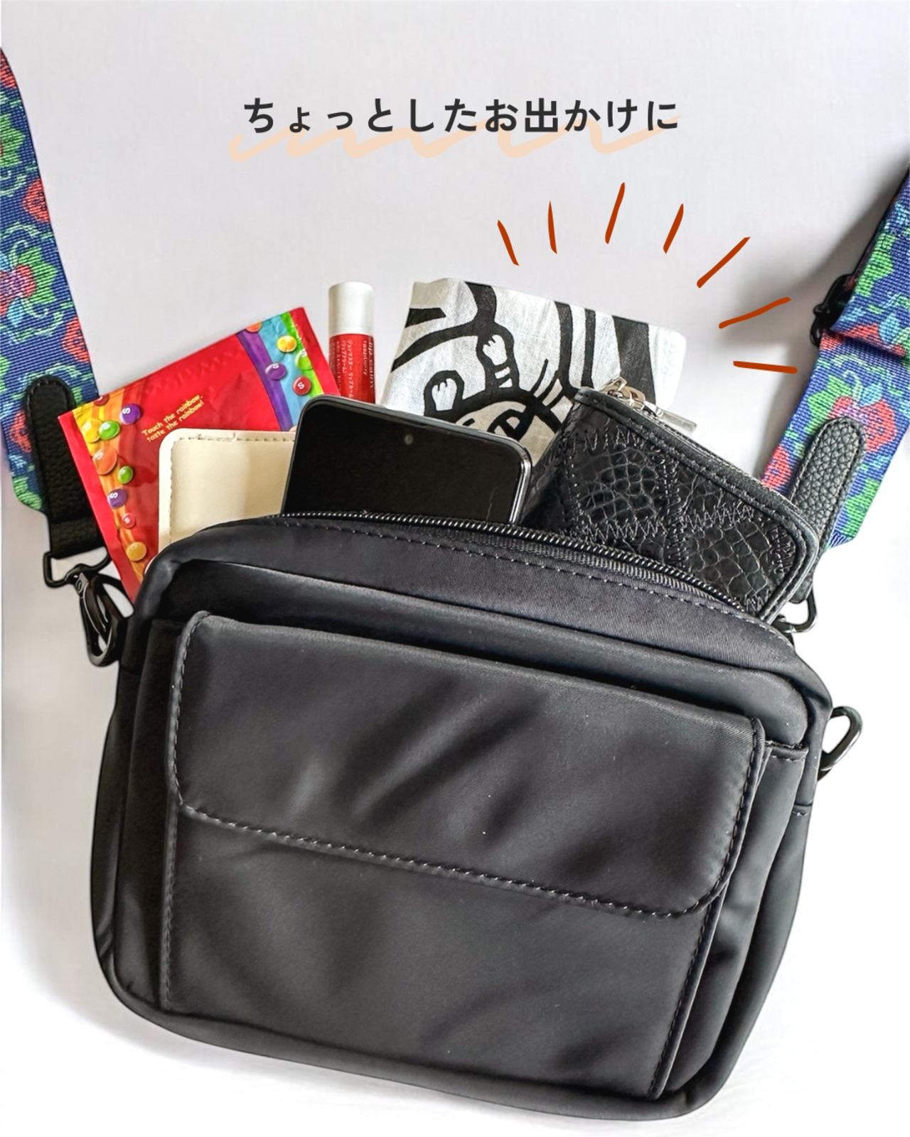 ・スマホ、財布、ハンカチ、鍵など必要なものがしっかり入ります