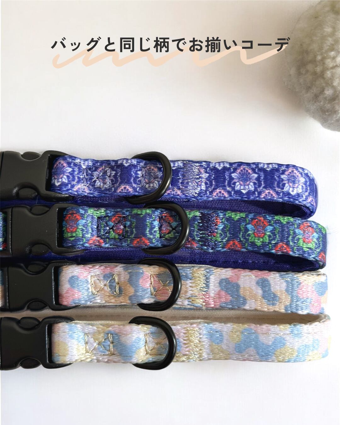 外出先でも愛猫とのつながりを感じられる、お揃い柄ショルダーバッグ+猫用首輪セット「Pair & Purr」です。