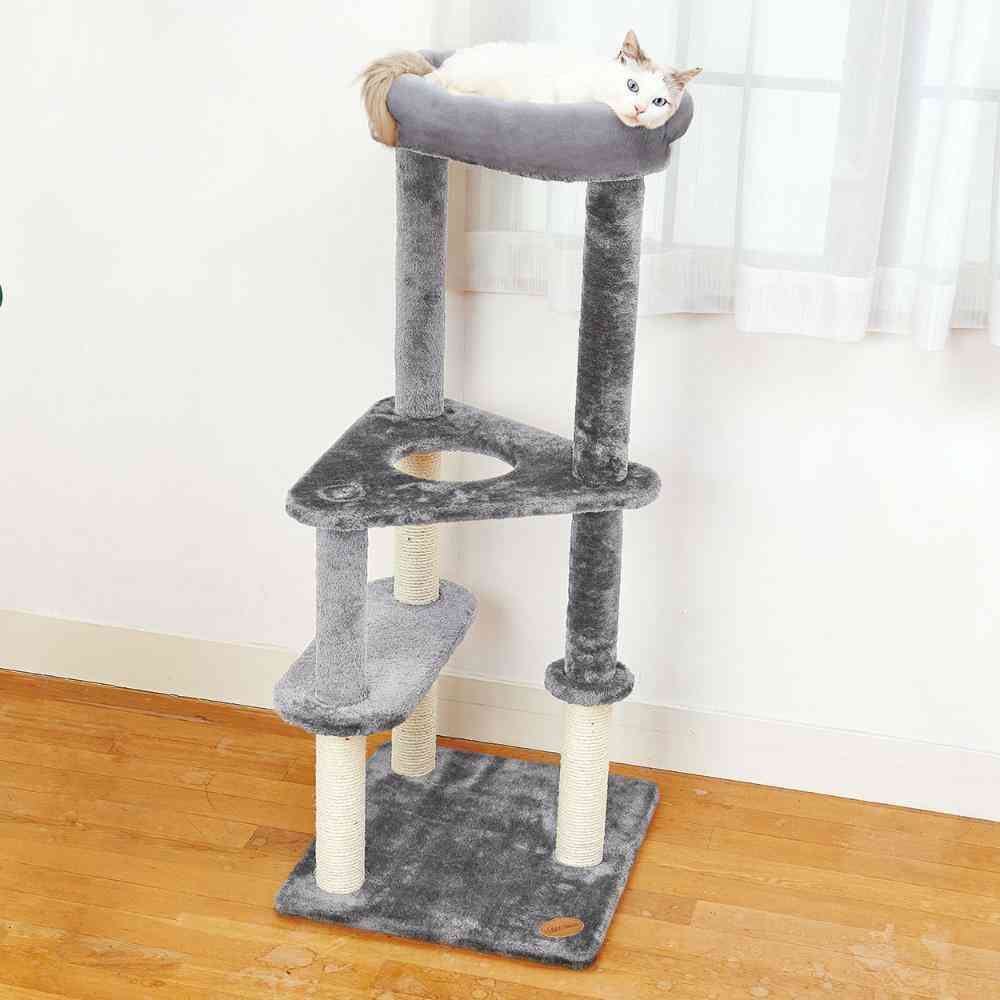 120cmコンパクトなキャットタワー 低め ペティオ ねこまど ヴィラフォートキャットポール ゆったりベッド