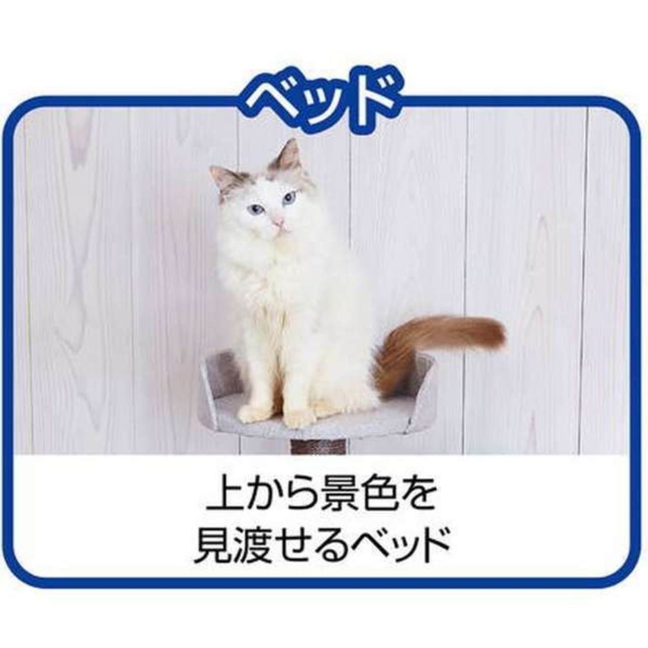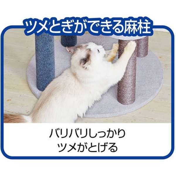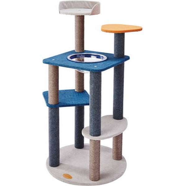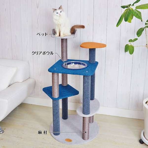 クリアボウルの透明感とモダンカラーのブルーがおしゃれに映える、Petioのキャットタワーです。