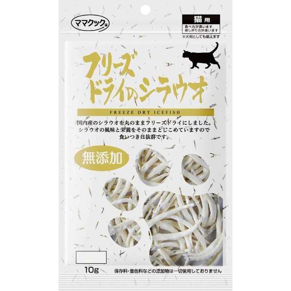 ペット用フリーズドライのリーディングカンパニー ママクック社の「フリーズドライのシラウオ 10g」です。
