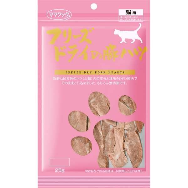 ペット用フリーズドライのリーディングカンパニー ママクック社の「フリーズドライの豚ハツ 25g」です。